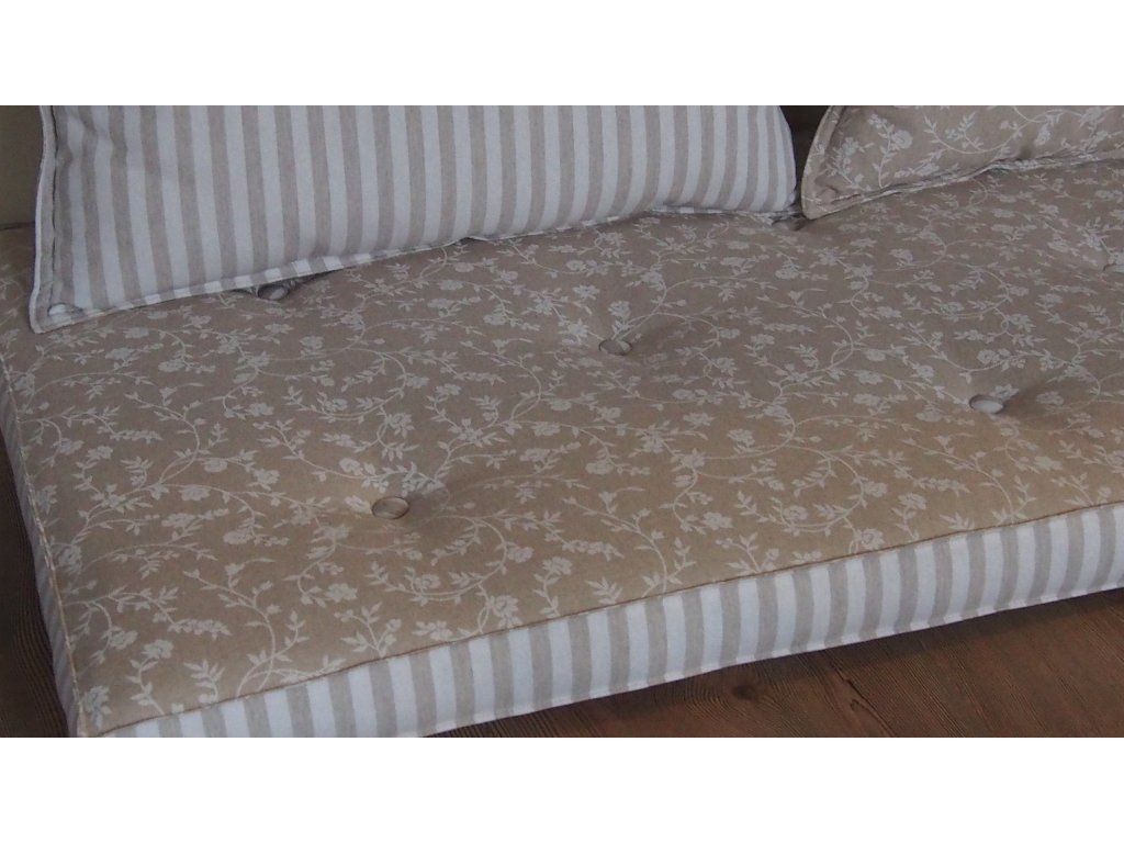 Jemný dekor na režném podkladu, látka vhodná na závěsy, sedáky,ubrusy,povláčky, zástěry... 80% bavlna 20% polyester šíře 140 cm