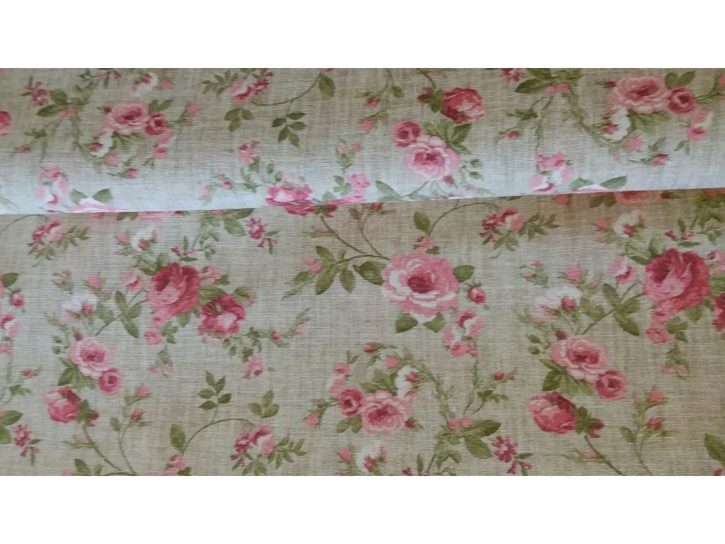 Jemný dekor na režném podkladu, látka vhodná na závěsy, sedáky,ubrusy,povláčky, zástěry... 80% bavlna 20% polyester šíře 140 cm